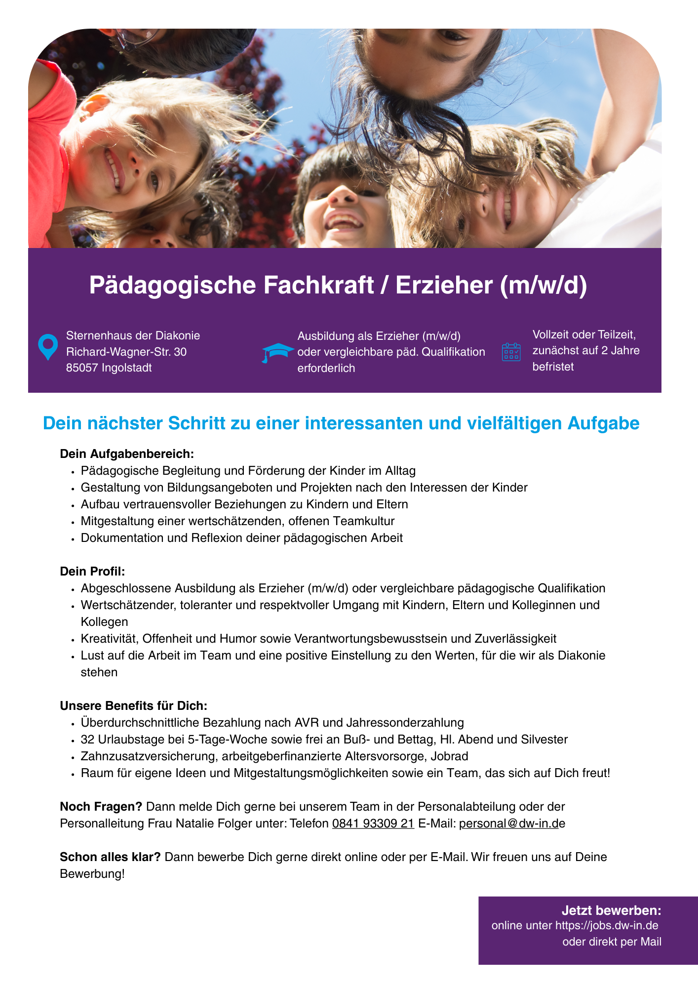 Noch Fragen? Dann melde Dich gerne bei unserem Team in der Personalabteilung oder der Personalleitung Frau Natalie Folger unter: Telefon 0841 93309 21 E-Mail: personal@dw-in.de