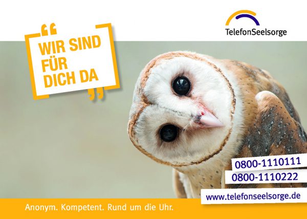 Jeden Tag haben Sie rund um die Uhr die Möglichkeit bei der TelefonSeelsorge Ingolstadt anzurufen. Ein/e Mitarbeiter/in ist bereit, mit Ihnen ein vertrauliches Gespräch zu führen.